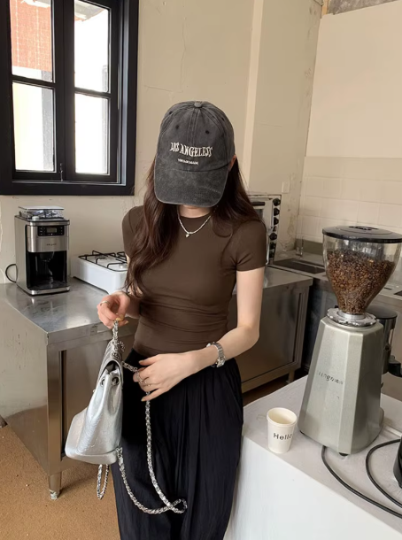 Aposte na elegância discreta da Blusa Marrom Justa Feminina, uma peça versátil e moderna que traduz o melhor do estilo minimalista.